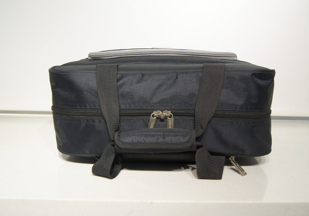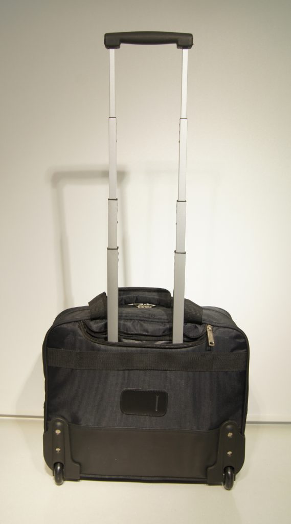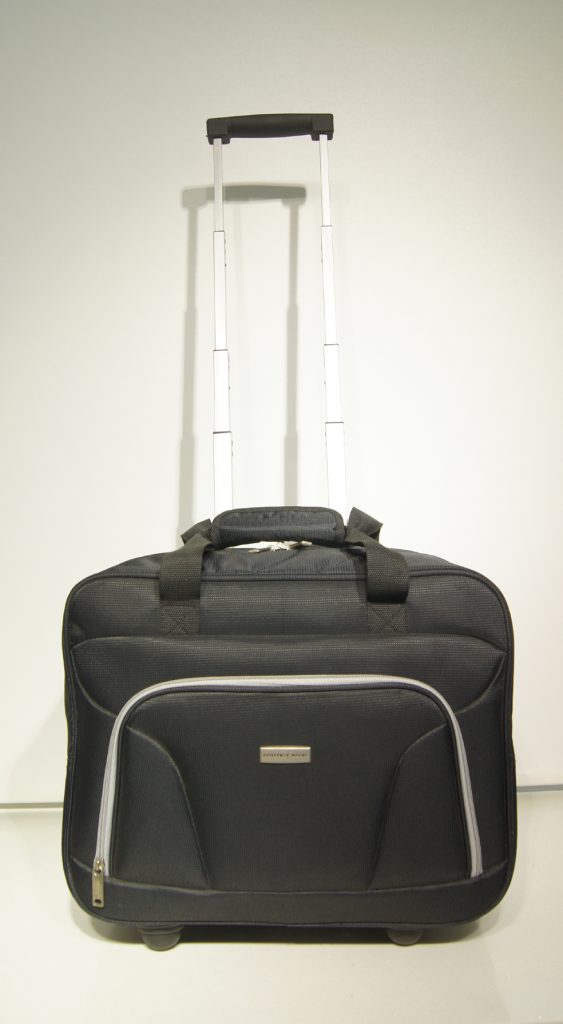 FA0224 Rolling Computer Bag *1200 D. polyester material*4 stage telescoping handle *Top self -material carry handle*Front zipper pocket*Back name card pocket Approximate size: 17" x 6" x 13" (43 x 15 x 33 cm) Back to Trolley Bag